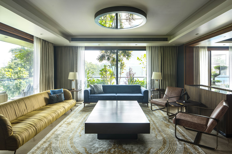 Additionally, a daybed sits in a snug corner of the plush couch, which offers the grandmother a dedicated spot to enjoy television. Even the utility areas, like the kitchen of the house, have been designed with futuristic solutions pertinent to the evolving lifestyle of the family and have adopted tech-enabled solutions for the same. In its manifestation, this house is inclusive of the changing spatial needs of the family and its varying demographics.