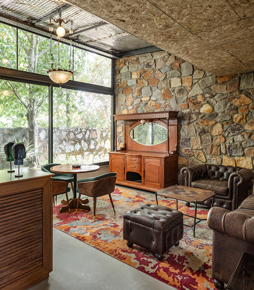 The interiors, woven with textures and memorabilia, embody a theme of simplicity while celebrating Indian heritage. Repurposed items from the previous office carry the DCA ethos into the new space, like the 80-year-old blue British lights casting a soft glow. The central table, crafted from century-old Mangalore doors with unique patinas, adds rich texture and colour. In the principal office, the unpolished table reflects the firm’s early charm. Personal memorabilia throughout the workspace fosters individual expression and celebrates the team’s collective spirit.