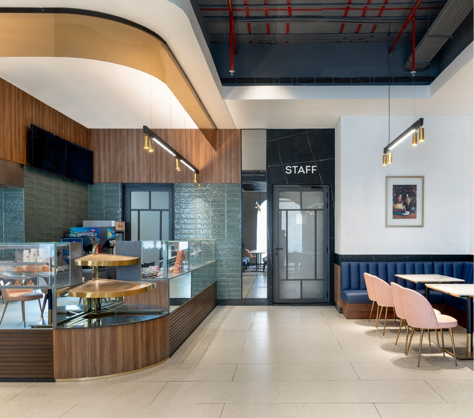 The site at hand was a former Mercedes showroom and inherently blessed the bare shell with a capacious floorplate and appreciable internal heights. The layout has been envisioned as three core zones that have been pragmatically designed while balancing function and aesthetics. Over 50% of the floorplan hosts the kitchen, service areas, and display counters with the brand’s products.