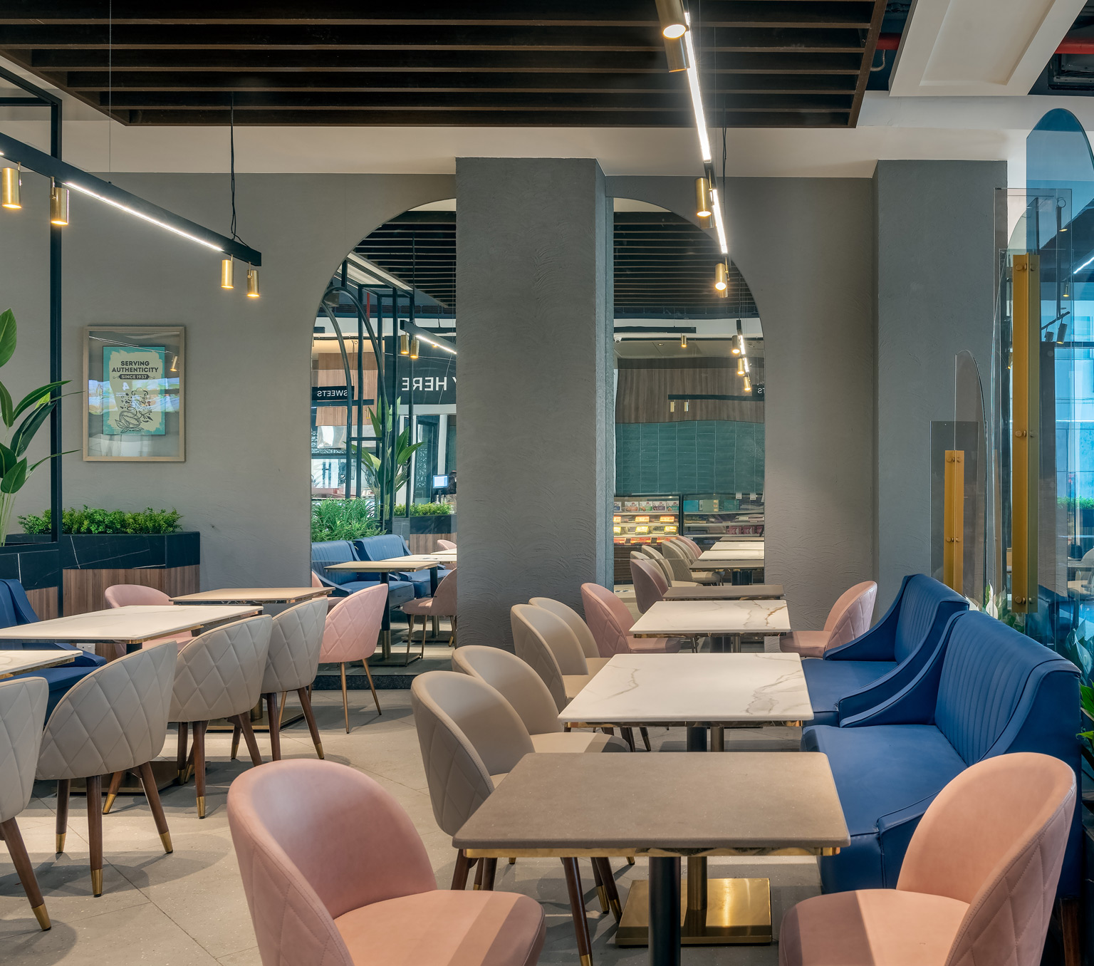 This Haldiram’s venue is a homage to the franchise’s legacy, which has been upheld kudos to the brand’s efforts to serve the bonafide celebrated Indian cuisine the world over! To honour the driving inspiration that champions the Indian heritage and culinary palette, groupDCA has curated locally available and indigenous materials to create a hospitality experience that is resoundingly rooted in Indian inspiration.