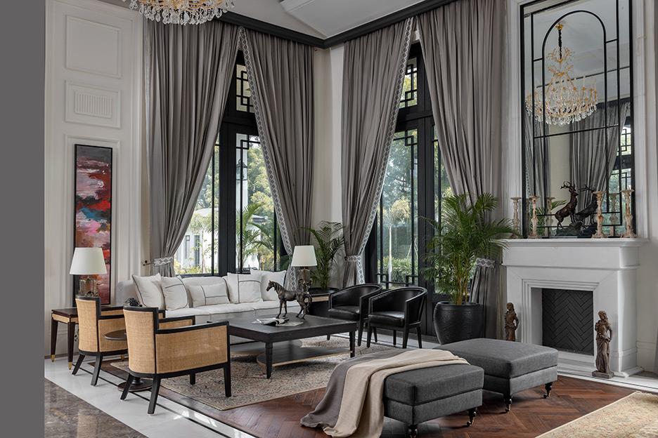 Each room features personalised touches with bespoke wallpapers or panelling, custom furniture, and unique upholstery. Rich, inviting colours are complemented by ample natural light streaming through large windows, infusing the spaces with warmth and elegance. The functional designs are crafted with meticulous attention to detail, evoking a nostalgic charm that celebrates the grace and sophistication of a bygone era.