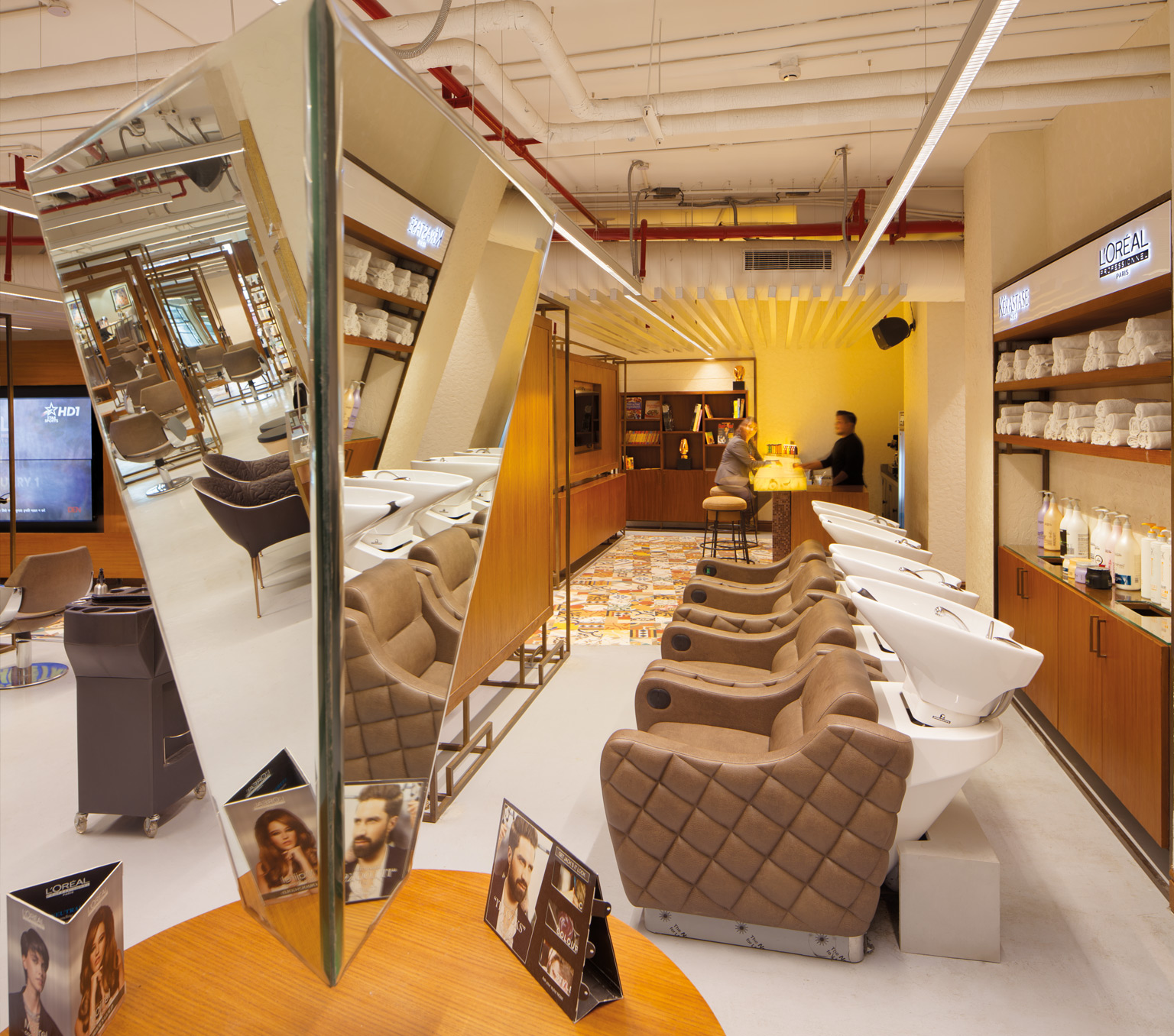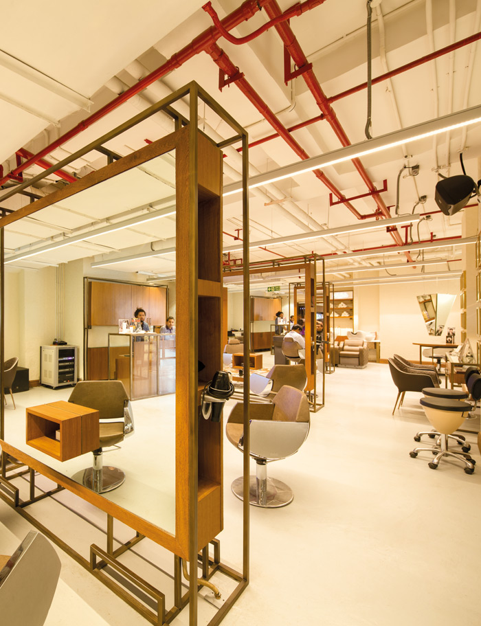 With the Looks brand having multiple presence through the city, and Group DCA being associated with it for the design of its many outlets, this particular outlet was taken up with its own set of unique challenges and planned with a distinct concept. Inheriting a larger space, within the corporate setting of suburban-NCR in the buzzing Cyber hub, Gurugram, the salon aims to cater to the upwardly, mobile aspirations of the young, dynamic, cosmopolitan clientele of the vicinity as well as discerning private and corporate clients. The defining elements in the salon are flooring and ceiling grid that facilitate circulation as well as highlight different pockets. Another divergent element is the incorporation of a video wall which roll out various collections done by the brand. Overall, the salon has a loungish feel that provides a relaxed, earthy semblance and experience.