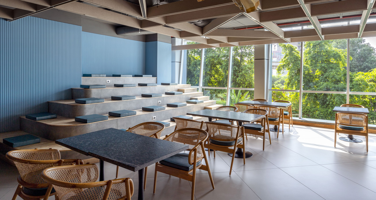 Paras Healthcare’s office stands out in Gurugram’s bustling business landscape with a simple and functional design philosophy. The thoughtfully crafted space promotes collaboration and productivity while prioritising employee well-being.