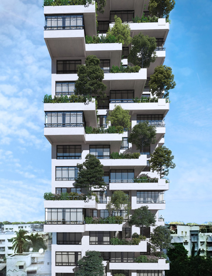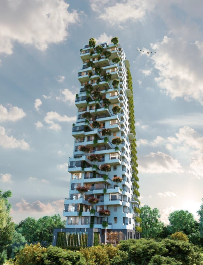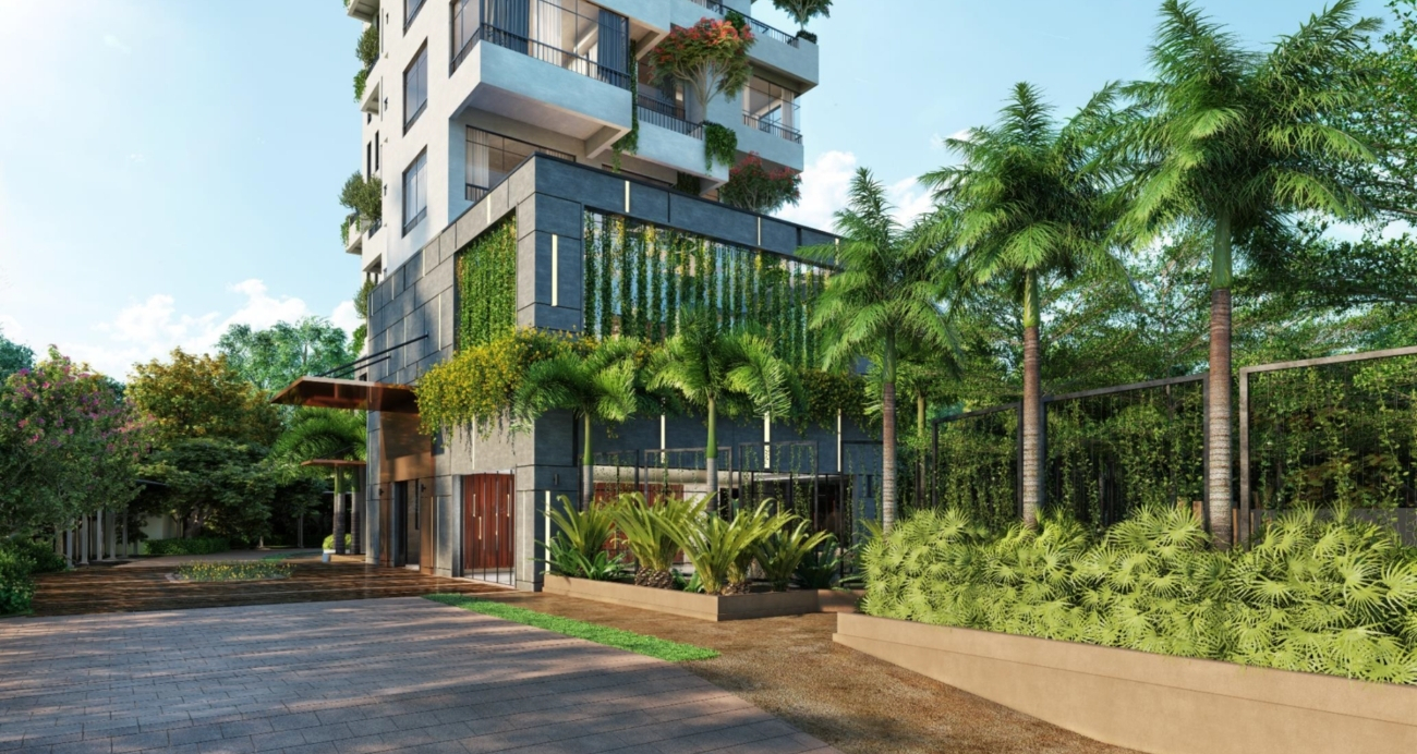 Designed as ‘luxury homes in the sky’, Ramdulari reimagines apartment living through a strong relationship with the surroundings. Nature is not treated as an accessory but as an integral design layer. Each apartment accommodates two full-grown trees, complemented by layered planting that blurs the boundary between indoors and out. These elevated landscapes recreate the sensibility of ground-level living, animating the built form while engaging residents in a constant dialogue with light, wind, and greenery.
