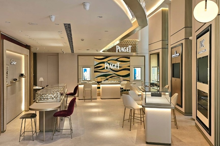 The Time Valle retail showrooms by groupDCA in Chennai, Mumbai, and Bangalore have emerged as iconic luxury watch destinations, celebrating the intricate artistry of time. These unique spaces are more than retail venues; they offer a journey into the world of fine watchmaking, housing distinguished brands such as Bvlgari, Cartier, Panerai, Zenith, Baume & Mercier, Jaeger Le Coultre, Piaget, Roger Dubuis, and IWC Schaffhausen. Each brand’s distinct character blends harmoniously into a layout that invites exploration and discovery.