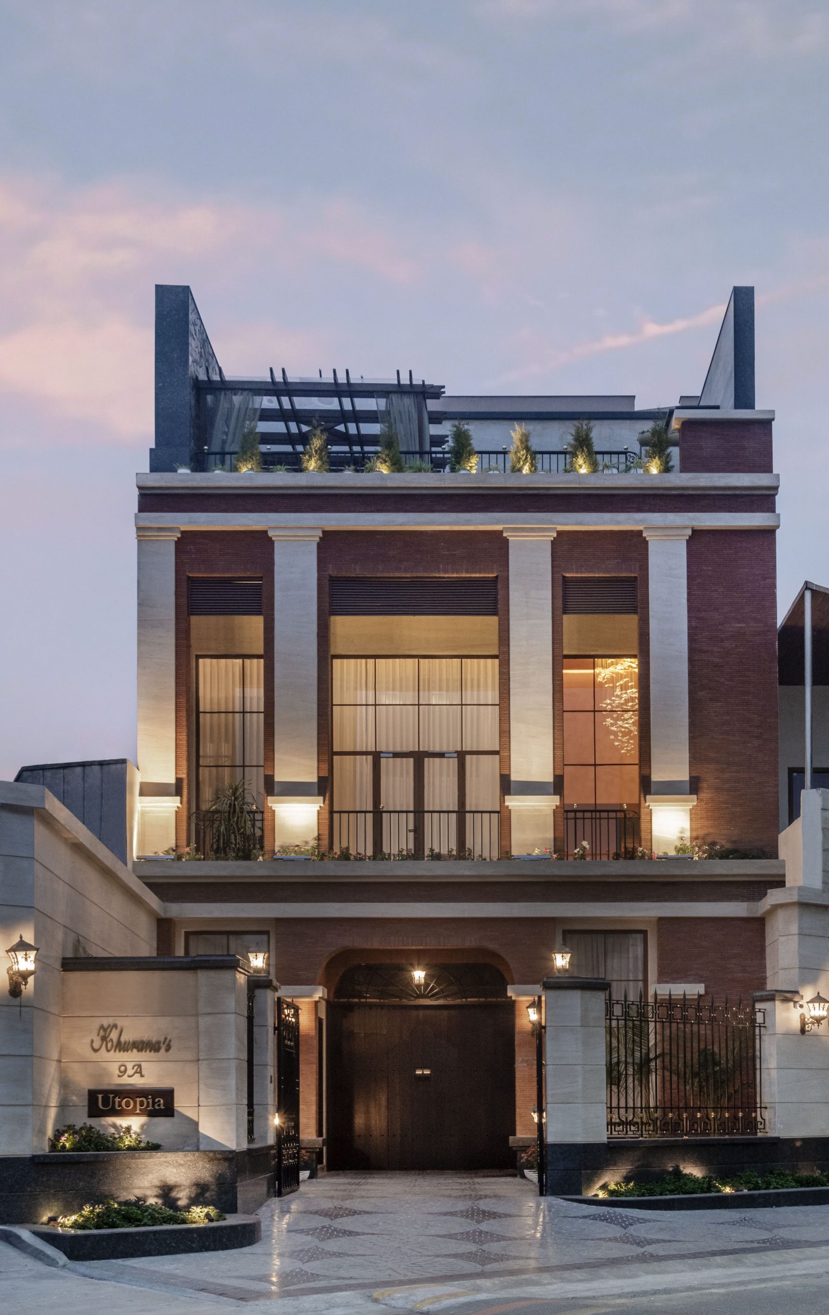 Tucked into a landlocked plot in Amritsar, Utopia reimagines the second home as a vertical sanctuary. With limited access to light, the design turned skyward—using height, volume, and natural elements to shape a tranquil, connected space. A double-height foyer leads into a sunlit living room, where a swing and mezzanine overlook a lush vertical garden and open metal staircase, evoking a townhouse courtyard.